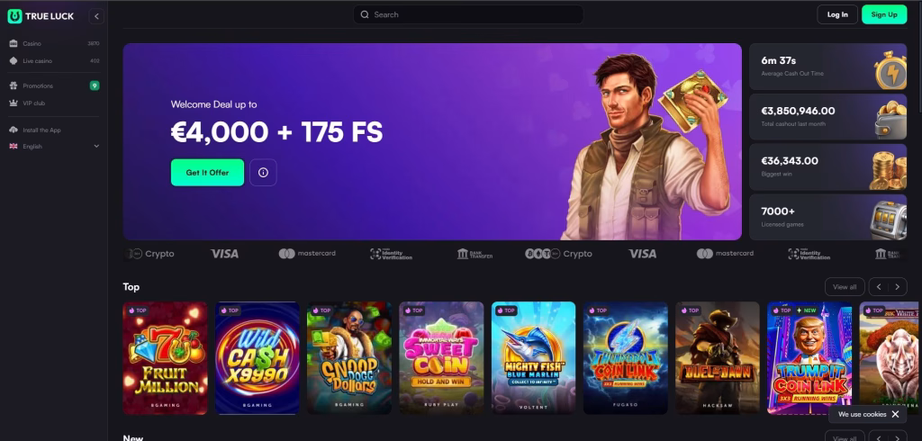 TrueLuck Casino се отличава на пренаселения пазар на онлайн казина чрез няколко забележителни функции, които са насочени както към традиционните играчи, така и към ентусиастите на криптовалутите. Като чисто нова платформа, стартирана през 2025 г., тя внася свежа енергия в сектора на iGaming, като същевременно включва доказани елементи, които играчите очакват от съвременните сайтове за игри.